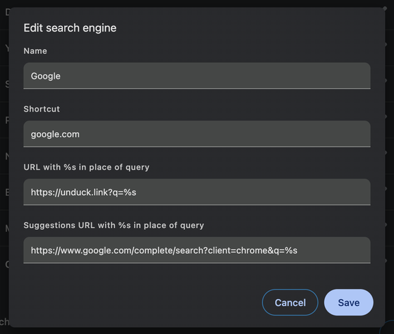 I’ve always liked the bang shortcuts from DuckDuckGo (searching other sites directly from the address bar is just super handy). While I didn’t want to actually use DuckDuckGo as my main search, I came across this clever project called Unduck by Theo (t3.gg), which basically adds DuckDuckGo’s bangs to any search—and still defaults to Google results. So now, I have all the bang magic and Google’s reliability as my primary search engine.